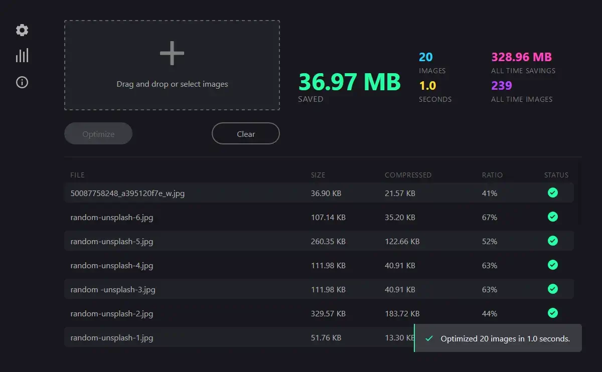 CommunityShowcaseOptimusバージョン: v2.11.0Optimus Optimusは、画像最適化のためのデスクトップアプリケーションです。 WebP、JPEG、PNG形式画像の相互変換や圧縮をサポートしています。